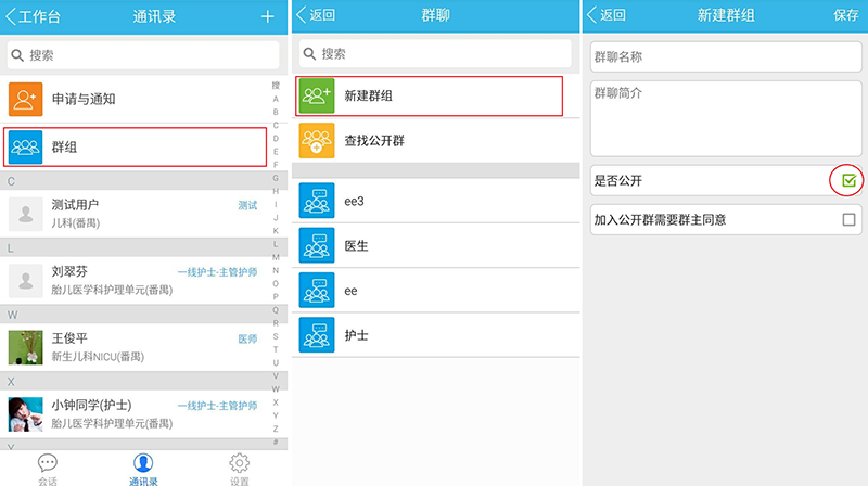 通讯录→群组→新建群组→勾选“是否公开”→保存 创建公开群可选择“加入是否需要群主同意”,如果勾选则需要,不勾选则不需要。