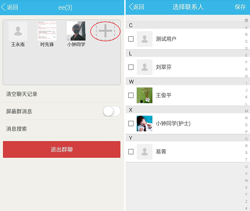 添加群成员 在公开群群聊页面右上角打开群详情,在群成员列表中点击“+”添加群成员